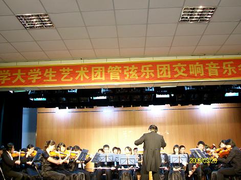 据了解,为庆祝建国六十周年,喜迎“五.四”运动九十周年,丰富我校大学生校园文化,提升全校师生的艺术鉴赏水平,展现当代大学生朝气蓬勃的面貌,我校大学生艺术团管弦乐团计划于3月20——31日期间,在我校中心校区、南岭校区、和平校区、朝阳校区、新民校区举办交响音乐会巡回演出。本次活动由我省交响乐团团长、著名指挥家张浩担任指挥,观众将欣赏到十余首国内外经典交响乐曲,充分领略到高雅艺术的独特魅力。(张建、赵乾祥摄影报道)